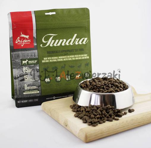 Orijen Tundra Cat 340g Wszystkie koty są mięsożercami, naturalnie przystosowanymi do diety bogatej w różne gatunki mięs, z dodatkiem owoców, warzyw i ziół. Odzwierciedlając bogactwo Natury, jedzenie ORIJEN TUNDRA przepełnione jest mięsem różnorodnych zwierząt: kozy, dzika, golca zwyczajnego, kaczki…