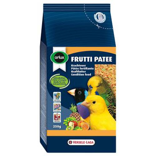 Orlux Frutti Patee to kolorowy treściwy pokarm do pokrycia wysokiego zapotrzebowania na energię małych papug, kanarków i ptaków egzotycznych. Zawiera małe kawałki owoców i wszystkie konieczne wartości odżywcze utrzymujące ptaki w najwyższej formie. Frutti Patee to wspaniała odmiana i pyszna przekąska dla Waszego ulubieńca.