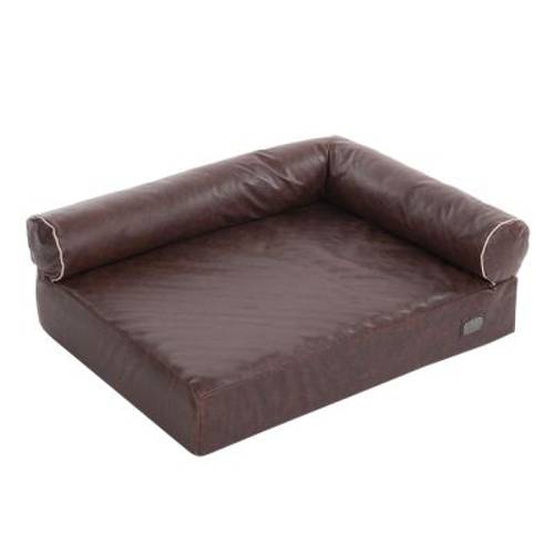 Ortopedyczna sofa dla psa z pianką Memory Foam i ze ściąganym pokrowcem ze skaju w antycznym stylu, higieniczna, idealna dla psów starszych i mających problemy ze stawami. Kolor: brązowy
