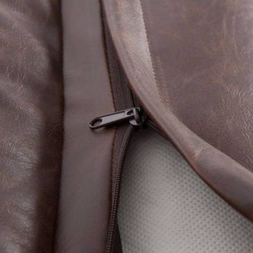 Gładka powierzchnia brązowego pokrowca wysokiej jakości ze skaju jest szczególnie miękka, a jego wytłoczona, marmurowa struktura nadaje mu antyczny wygląd. Imitacja skóry ma neutralny zapach i oferuje optymalną ochronę przed roztoczami i pchłami.