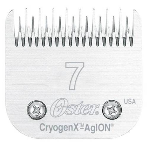 | Oster Nr 7 Skip Tooth | z kołtunami, gruba sierść na tułowiu | 3,2 mm | gęsta, gruba, ciężka w pielęgnacji, z kołtunami | Tułów: np. Terrier, Pudel, Labrador Golden Retriever, Chow Chow, Owczarek Niemiecki. Kołtuny: u psów wszystkich ras |