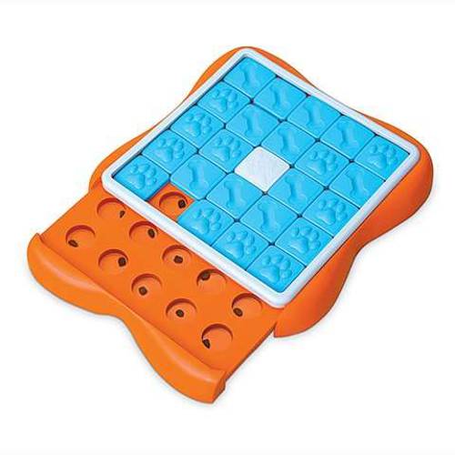 Outward Hound Challange Slider to zabawka postaci planszy o wymiarach 37 x 37 cm. W wysuwanej tacce należy umieścić psie przysmaki, a następnie po prostu wsunąć ją z powrotem. Zadaniem zwierzaka jest przesuwanie płytek w taki sposób, aby zlokalizować upragnioną nagrodę. Outward Hound Challange Slider to sposób znakomity trening zręczności, cierpliwości oraz logiki. Ponadto, zabawka węchowa pozwala psu zrelaksować się i wyzbyć destrukcyjnych zachowań. Gra logiczna pozwoli psu na ciekawe spędzenie czasu, gdy Ciebie nie będzie w pobliżu. Do zabawy najlepiej wykorzystać drobne, suche psie przekąski oraz smaczki treningowe.