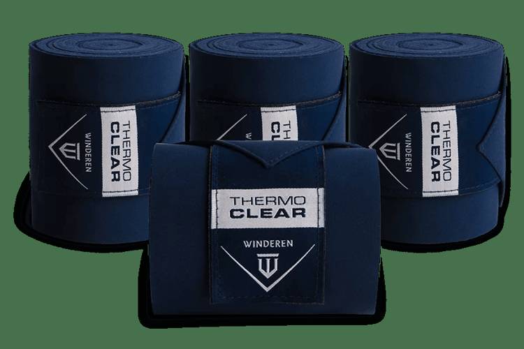 Termoregulacyjne owijki stajenne Thermo Clear Winderen - wykonane z materiału z paroprzepuszczalną membraną, który po stronie zewnętrznej jest nieprzyczepny. Materiał ten sprawia, że owijki nie tylko skutecznie utrzymują ciepłotę nóg konia po zawinięciu, ale równocześnie oddychają na całej swojej powierzchni oraz aktywnie odprowadzają wilgoć. Dzięki temu systemowi termoregulacyjnemu, nie dochodzi do przegrzania ścięgien.