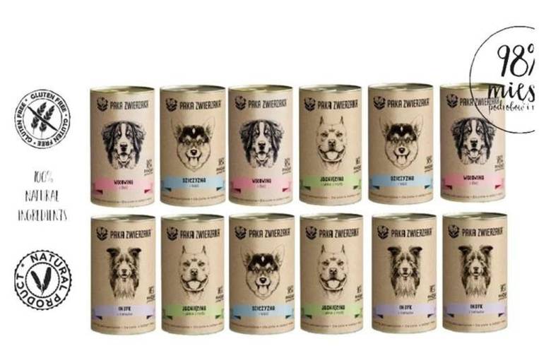 Zestaw zawiera: 3x Paka Zwierzaka wołowina i śledź 400g3x Paka Zwierzaka dziczyzna i łosoś 400g3x Paka Zwierzaka jagnięcina z jabłkiem i miętą 400g3x Paka Zwierzaka indyk z żurawiną 400gNaturalna karma mokra jest kompletnym i zbilansowanym posiłkiem dla psiaków w każdym wieku. Zawiera aż 98% wołowi…