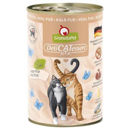 GranataPet to mokra karma dla kota jakości premium bez dodatku zbóż i glutenu, z cennym olejem z łososia, tauryną i nasionami granatu, gotowana na parze z delikatnymi, świeżymi składnikami
