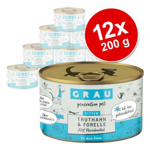Pakiet GRAU Kitten, bez zbóż, 12 x 200 g Kurczak i kaczka
