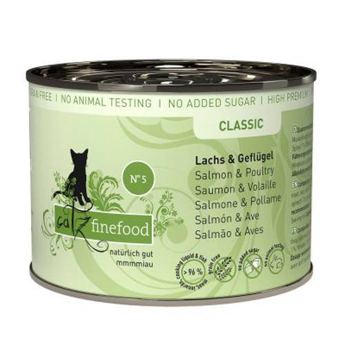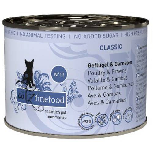 Witalność i zdrowie kota zależy zasadniczo od jedzenia, którym się żywi. Produkty catz finefood to dopasowane do potrzeb, zbilansowane i naturalne karmy dla kotów. Poszczególne receptury są wzorowane na naturalnym pożywieniu, dlatego zawierają najważniejsze substancje odżywcze i białka, które sama natura przewidziała dla kotów. Z tego powodu karma jest wolna od zbóż, będących ciężkostrawnym i nieprzyswajalnym składnikiem w kociej diecie.W karmie znajdują się wyłącznie najwyższej jakości mięso i wnętrzności z niemieckich gospodarstw rolnych oraz ryba z wolnych i zrównoważonych połowów. Cenne, świeże składniki po szczegółowym sprawdzeniu i kontroli weterynaryjnej wejdą w skład catz finefood. Zapewnia to maksymalna kontrola jakości i bezpieczeństwa. Podczas starannego gotowania na parze wszystkie substancje odżywcze oraz cenne kwasy tłuszczowe zostają niemal całkowicie zachowane. Produkcja karmy: wyłącznie w Niemczech.