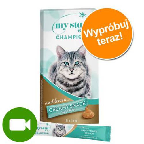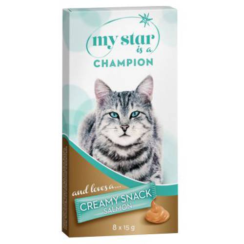 Przysmak My Star Creamy Snack jest dostępny w 3 wariantach smakowych: Creamy Snack z ekstraktem słodowym, Creamy Snack o smaku wątrobianki i Creamy Snack o smaku łososia. Oddzielnie pakowane porcje, które ułatwiają podawanie i pozwalają dłużej zachować świeżość pożywienia. Twój kot będzie zachwycony!