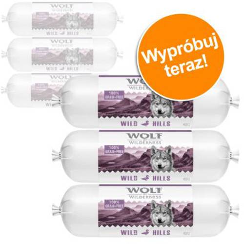 Pakiet próbny Wolf of Wilderness, kiełbaski, 6 x 400 g Wild Hills, kaczka