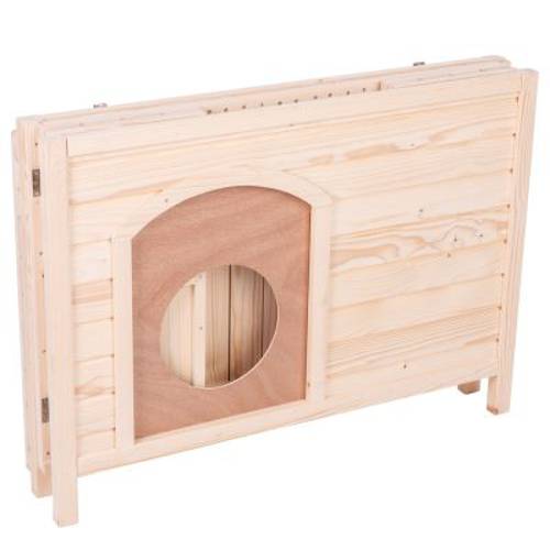 Składany, przestronny domek z drewna ze zrównoważonej gospodarki leśnej, drzwiczki dla kota, szybki montaż, możliwość indywidualnej aranżacji kolorystycznej, zmontowany, dostępny w 3 rozmiarach