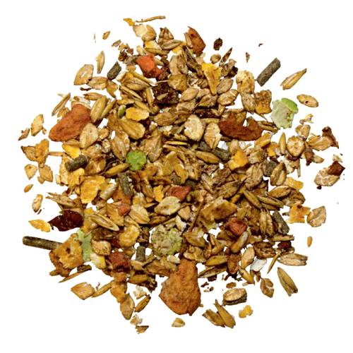 Dzięki płatkowana marchwi, wytłokom z jabłek i żółtego siemienia lnianego, konie chętnie pobieraną paszę. Ponadto, dodatkowa porcja włókna w otrębach pszennych, wytłokach i makuchu lnianym wpływa pozytywnie na pracę jelit. Struktura paszy Senior Plus ułatwia jej pobieranie, jednak w przypadku koni z problemami z uzębieniem zaleca się moczenie paszy przed podaniem. UWAGA! - Aby zachować zawarte w paszy witaminy nie należy zalewać jej gorącą wodą.