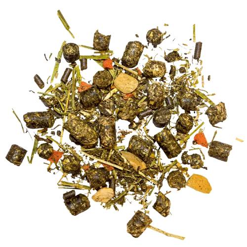 Dzieki wysokiej zawartości włókna, konie powoli przeżuwają paszę, co wspomaga procesy trawienne i zapewnia poczucie sytości. Makro- i mikroelementy, witaminy i aminokwasy zapewniają pełne pokrycie potrzeb pokarmowych nawet przy zadawaniu niewielkiej ilości paszy. Naturalne dodatki jak suszona marchew (organiczny β-karoten) i płatkowany czosnek podnoszą wartość pokarmową i urozmaicają paszę.