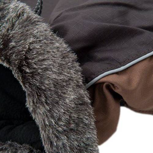 Płaszcz można dopasować do rozmiaru ciała psa dzięki regulowanemu paskowi znajdującemu się na brzuchu oraz dzięki ściągaczowi ze stoperem umieszczonemu na kołnierzu. Dodatkowe nogawki dają gwarancję tego, że płaszcz będzie się układał dobrze nawet z tyłu, a przy tym zapobiegają przesuwaniu się ubrania.