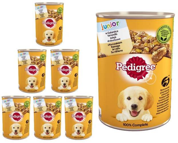 Pedigree Junior z kurczakiem w galaretce ZESTAW 24x400g Karma pełnoporcjowa dla rosnących psów / szczeniąt. W okresie szczenięcym Twój pies najszybciej się rozwija. Trzeba wówczas starannie dbać o jego specyficzną dietę, aby mógł rosnąć zdrowo. Eksperci Pedigree z myślą o tym, przygotowali pożywn…