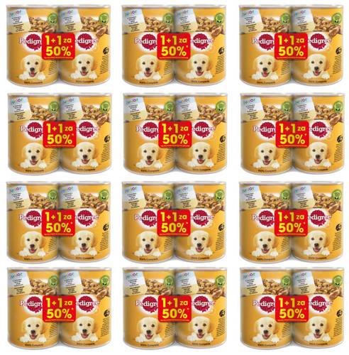 Mieszając karmę Pedigree junior w puszkach z karmą suchą Pedigree junior, należy użyć tylko połowy zalecanych ilości każdego produktu.