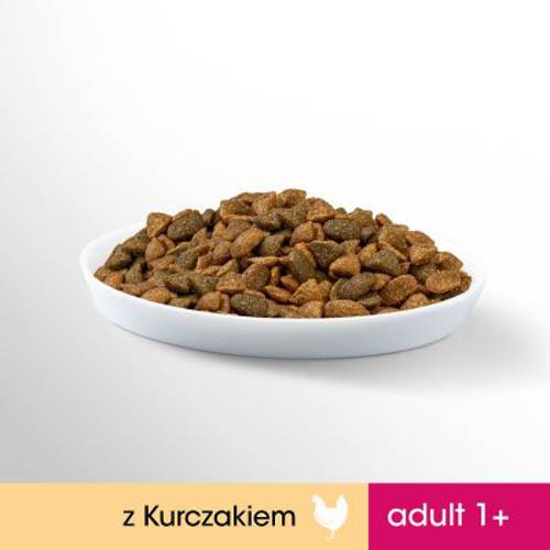 Sucha karma pełnoporcjowa z kurczakiem dla dorosłych kotów, wysokiej jakości proteiny dla utrzymania odpowiedniej masy mięśniowej, specjalna struktura krokietów ułatwiająca czyszczenie zębów
