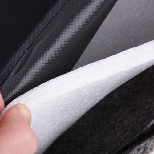 - Wodoodporna powłoka zewnętrzna: odporna na intensywne użytkowanie tkanina, wewnątrz pokryta tworzywem sztucznym, wzmocnione rogi.