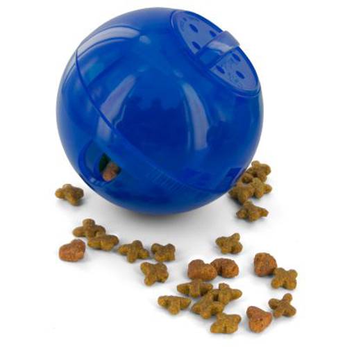 Piłka na przysmaki SlimCat firmy PetSafe to najlepsze lekarstwo na nudę i wspaniały sposób na utrzymanie sylwetki Twojego kota, można wypełnić karmą suchą lub przysmakami; kolor: niebieski. Śr. 7,5 cm