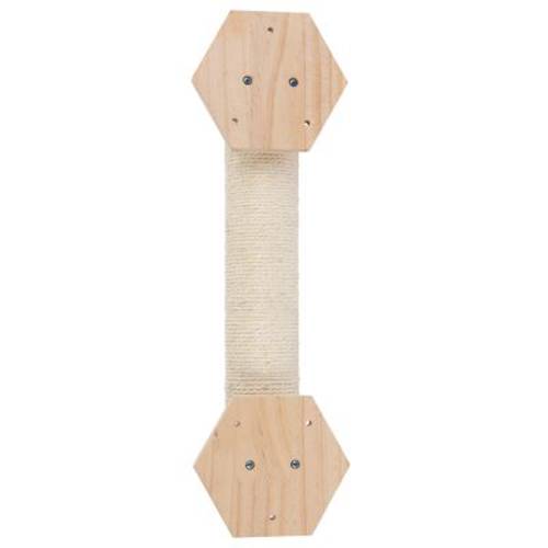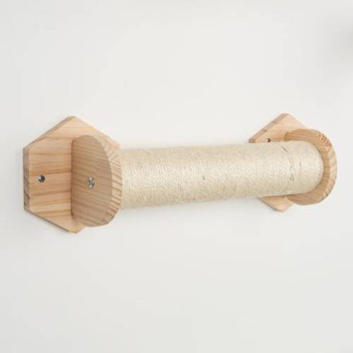 Słupek do drapania jest owinięty naturalnym sizalem i można go zamontować na ścianie zarówno w pozycji pionowej, jak i poziomej. W tym celu należy użyć wspornika ściennego wykonanego z litego, naturalnego drewna sosnowego, który jest dołączony do dostawy. Ten słupek dla kotów można zamontować na dowolnej wysokości, a w razie potrzeby połączyć z innymi elementami w celu stworzenia pełnego urozmaicenia ściennego toru przeszkód.