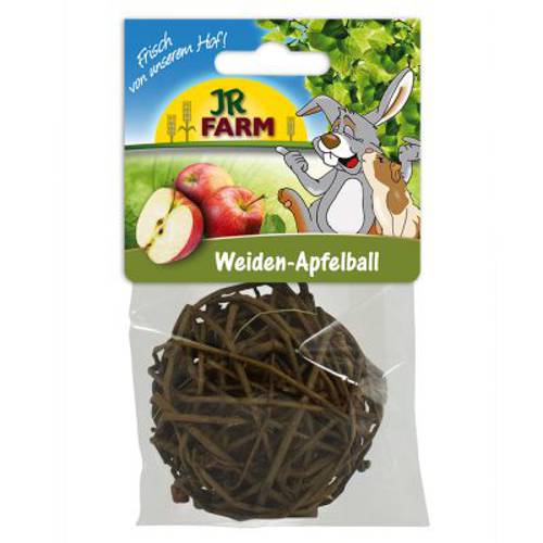 Piłeczka od JR Farm z gałązek wierzby, pełna kawałków suszonego jabłka, nadaje się do ponownego napełniania, średnica: ok. 8 cmPiłeczka z gałązek wierzby to wspaniała zabawka dla królików i innych gryzoni. Twój ulubieniec najpierw musi się przegryźć przez surowe gałązki wierzby, aby dotrzeć do pys…