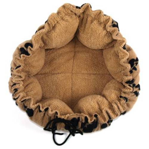 Poduszka Branca dwa w jednym - pikowana poduszka, którą można poprzez ściągnięcie wszytego sznurka zamienić w przytulny koszyk, nadająca się dla kotów i małych psów. Kolor: beżowy z nadrukiem łapek
