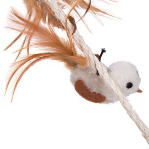 - Wiszące na sizalowej lince zabawki z prawdziwymi piórkami