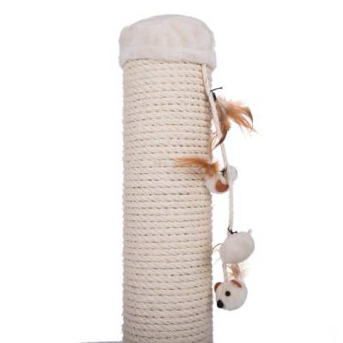 Drapak dla kota, w postaci pojedynczego słupka o średnicy 15 cm, oplecionego 1 cm warstwą sizalu, z zabawkami i piórami, dla dużych i ciężkich kotów, kolor kremowy