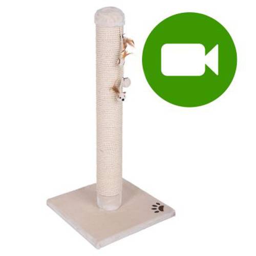 Drapak dla kota, w postaci pojedynczego słupka o średnicy 15 cm, oplecionego 1 cm warstwą sizalu, z zabawkami i piórami, dla dużych i ciężkich kotów, kolor kremowyBardzo wytrzymały słupek do drapania dla kota Premium XXL oparty na bardzo ciężkiej i grubej podstawie gwarantuje stabilność nawet w prz…