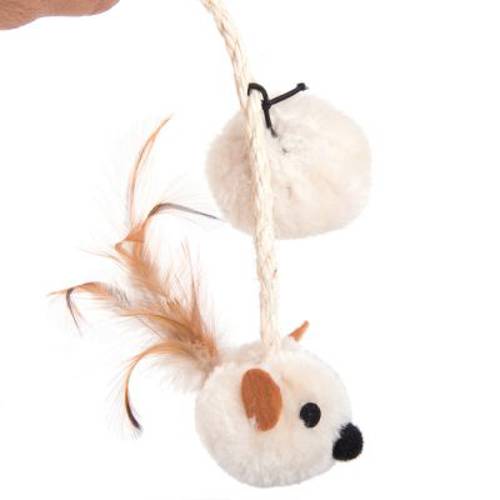 Różnorodne zabawki w postaci piłeczki, wrednej myszki oraz ptaszka zwisają na sizalowym sznurku i zachęcają Twojego pupila do figlowania i zabawy. Wyjątkowo masywna podstawa sprawia, że słupek stabilnie stoi na swoim miejscu, nawet w trakcie użytkowania przez koty dużych i ciężkich ras.