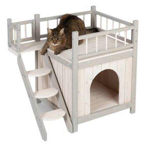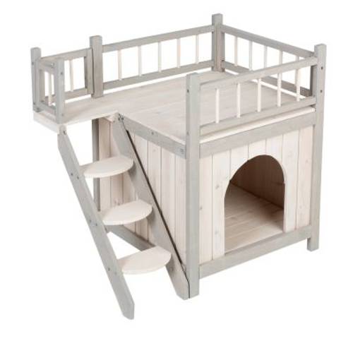 Bajeczny i wyjątkowy domek z tarasem na dachu: wymarzone gniazdko dla wymagających kotów i dla małych piesków, ze schodkami, kolor szaro-biały Domek Prince to dla Twojego pupila majestatyczne gniazdko zapewniające mu dodatkowe schronienie na parterze i fantastyczny punkt obserwacyjny na tarasie na…