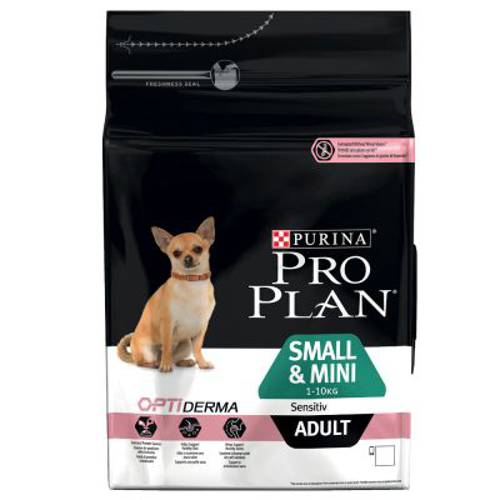 Karma sucha opracowana przez ekspertów żywieniowych i weterynarzy, spełniająca wyjątkowe potrzeby psów ras małych i bardzo małych, które cierpią na problemy skórne lub mają wrażliwą skórę. Sprawdzone klinicznie połączenie składników żywieniowych OptiDerma pozytywnie wpływa na kondycję skóry i sierści, może również złagodzić świąd i łupież. Ponadto wykorzystanie łososia jako wysokiej jakości źródła białka zmniejsza ryzyko alergicznych reakcji skóry, które mogą wynikać z nietolerancji pokarmowych.