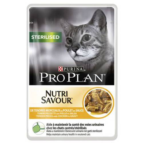 Aby prowadzić aktywne i zdrowe życie, wykastrowane koty potrzebują odpowiedniej karmy, ponieważ zaraz po zabiegu kastracji zmienia się ich przemiana materii. Pro Plan Sterilised to karma marki PURINA, która stanowi połączenie dużej ilości protein, niewielkiej zawartości tłuszczów z innymi pysznymi skaładnikami. Twój kot je pokocha! Pro Plan Sterilised to karma kompletna dla dorosłych wykastrowanych kotów, która jest bogata w antyoksydanty, które wspomagają system immunologiczny i siły obronne organizmu. Karma dostępna jest w dwóch pysznych smakach: pyszny kurczak lub smakowita wołowina.Pro Plan Sterilised Nutrisavour w skrócie: