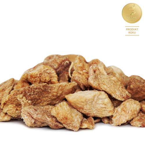 Liofilizowany indyk dla najbardziej wybrednych kotów. Medaliony z piersi indyka zawierają cenne dla kota mikroelementy i są lekkostrawne. Mięso z części piersi z indyka z większą zawartością magnezu i tłuszczu dzięki temu bardziej energetyczne. Jest też źródłem mikroelementów takich jak fosfor, potas, magnez, żelazo oraz witaminy z grupy B, które pozytywnie wpływają na kocie zdrowie.