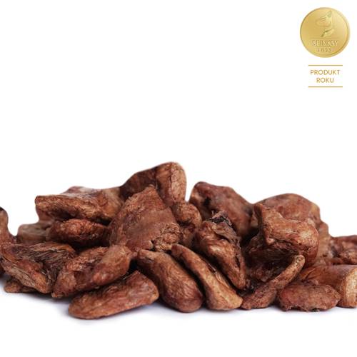 Mięso pochodzi z lokalnej hodowli i jest wolne od antybiotyków. W przysmakach nie znajdziecie szkodliwych wypełniaczy, konserwantów, chemii czy zboża.