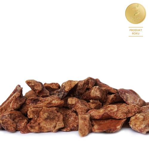 Mięso pochodzi z lokalnej hodowli i jest wolne od antybiotyków. W przysmakach nie znajdziecie szkodliwych wypełniaczy, konserwantów, chemii czy zboża.