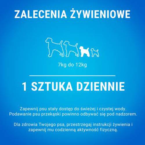 Przysmak pielęgnujący zęby dla psów małych ras (7-12 kg), może redukować powstawanie kamienia nazębnego i wspomagać świeży oddech, specjalny kształt i tekstura, z wapniem, bez cukru