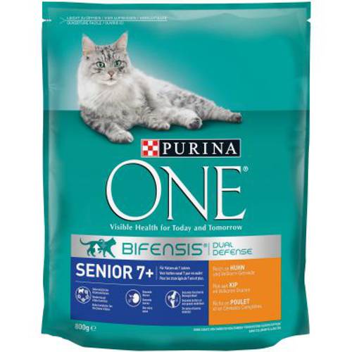 Purina ONE Senior 7+ to karma sucha specjalnie dostosowana do potrzeb żywieniowych starszych kotów - powyżej 7. roku życia, która gwarantuje optymalne odżywienie oraz działa prozdrowotnie. Formuła Bifensis Dual Defense odpowiada za podwójną ochronę zdrowia - od wewnątrz i z zewnątrz. Zbilansowana receptura zawierająca 24 witaminy i minerały podnosi witalność i wzmacnia nerki. Karma przyczynia się również do podniesienia ruchliwości, osiągnięcia szczupłej sylwetki oraz wzmocnienia kości.Formuła Bifensis Dual Defense, która została opracowana we współpracy z lekarzami weterynarii i ekspertami żywieniowymi, zapewnia zwiększoną produkcję przeciwciał w jelitach. Oprócz pożytecznych bakterii działających w układzie trawiennym i wzmacniających system odpornościowy, karma zawiera wartościowe kwasy tłuszczowe i cynk - zapewniają one zdrową skórę i błyszczącą sierść. Purina One Sterilcat zawiera wszystkie kluczowe substancje odżywcze, które są niezbędne do utrzymania zdrowia kota w doskonałej kondycji.