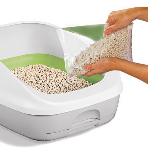 - Komplet na start zawierający kuwetę z szufelką, żwirek dla kota i podkłady