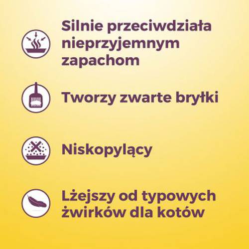 W 100% naturalny żwirek do kuwety, niski poziom pylenia, dobrze wchłania ciecz i absorbuje zapachu, mocno zbrylający się, można go utylizować w toalecie, przyjazny środowisku i biodegradowalny
