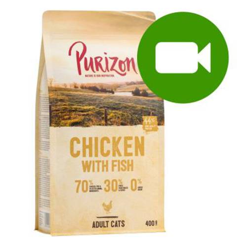 Purizon Adult, kurczak i ryba to karma pełnoporcjowa dla dorosłych kotów wszystkich ras, dostępna w opakowaniach 400 g, 2,5 kg, 6,5 kg oraz 2 x 6,5 kg.