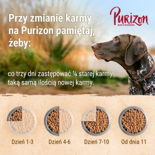 Inspirując się różnorodnością natury karma Purizon oferuje szeroki wybór wartościowych składników: 80% mięsa, ryby lub składników zwierzęcych w kombinacji z 20% owoców i warzyw.