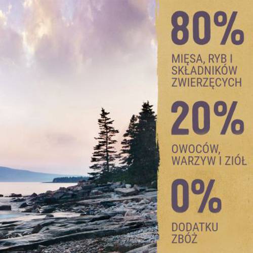 - Niezwykła różnorodność receptur: 80% mięsa, ryb i składników pochodzenia zwierzęcego, 20% owoców i warzyw.
