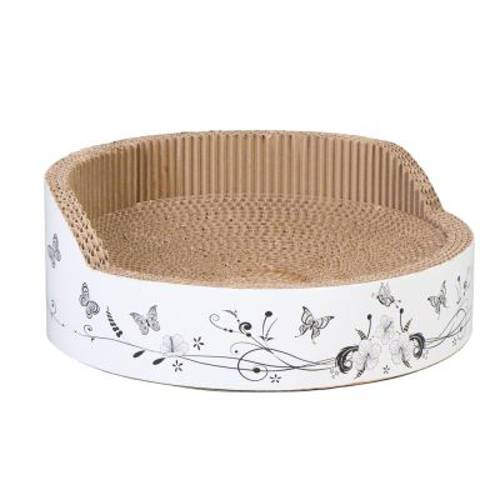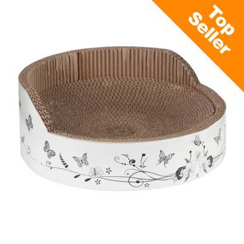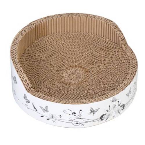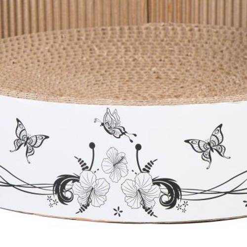 Możliwość drapania i wypoczywania na legowisku z motywem motylków, duża powierzchnia odpowiednia nawet dla kotów dużych ras, w zestawie z kocimiętką. Śr. x wys.: 39 x 14,5 cm