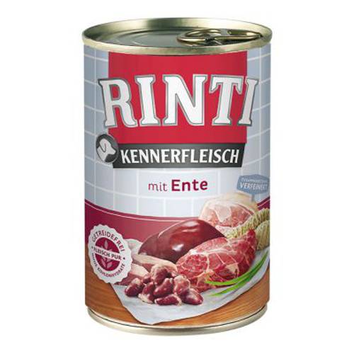 RINTI to zbilansowana karma mokra dla psów - koneserów, wyłącznie z czystym mięsem:, dostosowana do potrzeb żywieniowych tego gatunku. Pies jest z natury mięsożerny, jego przewód pokarmowy jest przystosowany do trawienia mięsa. Pierwotne pożywienie - upolowana zwierzyna - zawierała obok mięsa czystego również wnętrzności jak wątroba, żołądek czy płuca.Pies jest typowym mięsożercą, dlatego nie potrzebuje zbóż czy węglowodanów jako źródła energii. Zawarte w mięsie tłuszcze i białka zaopatrują psa w potrzebne kalorie.