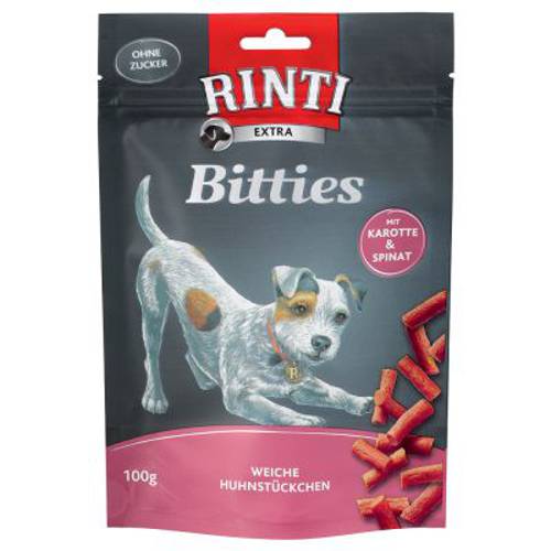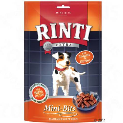 RINTI Extra Bits to pyszne snacki dla psa w małej formie, przeznaczone dla psów małych i średnich ras. Przysmak z piersi i watróbki kurczaka lub filetu i wątróbki z kaczki, z dodatkiem warzyw to czysta harmonia smaku. Snacki RINTI są nie tylko pyszne, ale również zdrowe i lekkostrawne. Snacki są starannie i delikatnie suszone na powietrzu. Dzięki zamykanemu opakowaniu pozostają dłużej świeże. Nie zawierają mączki mięsnej, soji oraz konserwantów.RINTI Extra Bits są dostępne w 3 zdrowych wariantach smakowych: