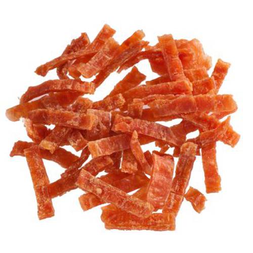 Drobne paski do żucia i chrupania z kurczaka, kaczki lub wołowiny, suszone na powietrzu, z niską zawartością tłuszczu, zamykane opakowanie, bez cukru i zbóż, doskonały przysmak treningowy