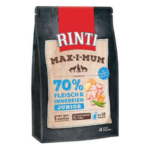 Aby zaspokoić specjalne potrzeby szczeniąt i dorastających psów, ważna jest odpowiednia karma. Rinti Max-i-mum Junior została opracowana specjalnie dla młodych psów i nadaje się jako kompletna karma do podawania każdego dnia.Sucha karma jest przygotowywana z 65% świeżego mięsa i świeżych podrobów. Przyczynia się to nie tylko do uzyskania odpowiedniego dla gatunku profilu składników odżywczych, ale także nadaje nadaje karmie pyszny, mięsny smak. Rinti Max-i-mum Junior ma zwiększoną zawartość tłuszczu i białka oraz odpowiedni stosunek wapnia do fosforu. Może to sprzyjać zdrowemu wzrostowi. Zawiera również kwasy tłuszczowe omega-3, które mogą pomóc wzmocnić układ odpornościowy. Sucha karma nie zawiera zbóż i dlatego jest odpowiednia dla zwierząt z odpowiednią nietolerancją.