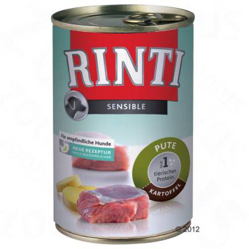 RINTI Sensible to karma mokra dla psów, z wyszukanych rodzajów mięs i innych składników odżywczych, do 65% mięsa i wnętrzności, dla psów wrażliwych cierpiących na niestrawności i alergie pokarmowe