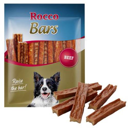 Rocco Bars to bezzbożowe wołowe batony do żucia. Intensywny smak mięsa i chrupka radość z żucia czynią z tych niskotłuszczowych sztabek optymalny przysmak zajmujący zwierzę na dłużej. Sprawdzą się jako niewydzielająca intensywnego zapachu alternatywa dla penisów wołowych. Gryzaki mają zwartą konsystencję i wysoką zawartość wołowiny. Dzięki temu Twój pies może cieszyć się tym pożywnym smakołykiem naprawdę długo.Batony Rocco Bars są dostępne w trzech rozmiarach, dzięki czemu nadają się dla psów różnych wielkości i ras: