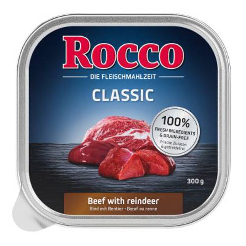 Bezzbożowy, mięsny posiłek marki Rocco, wysoka zawartość mięsa i podrobów, 100% świeżych składników najwyższej jakości. Teraz w praktycznych tackach po 300 g!Rocco Classic – mięsna rozkosz dla podniebienia niezliczonej rzeszy psich smakoszy! Teraz także w tackach o pojemności 300 g. Receptury tej k…